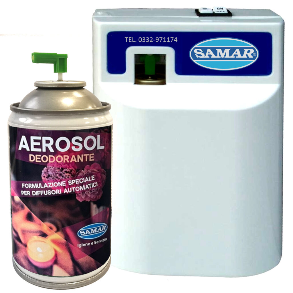 Air Control deodorante aerosol viene rilasciato ad intervalli regolari programmabili da 7,5 a 30 minuti, assicurando in questo modo una costante profumazione.